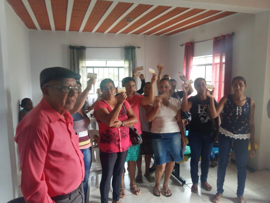Agricultores e Familiares recebendo cartões relativo ao Programa de Aquisição de Alimentos (PAA)