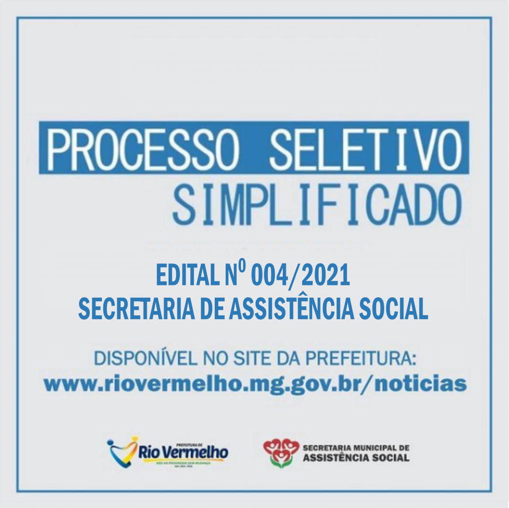 EDITAL DE PROCESSO SELETIVO SIMPLIFICADO Nº 004/2021 – SECRETARIA DE ASSISTÊNCIA SOCIAL