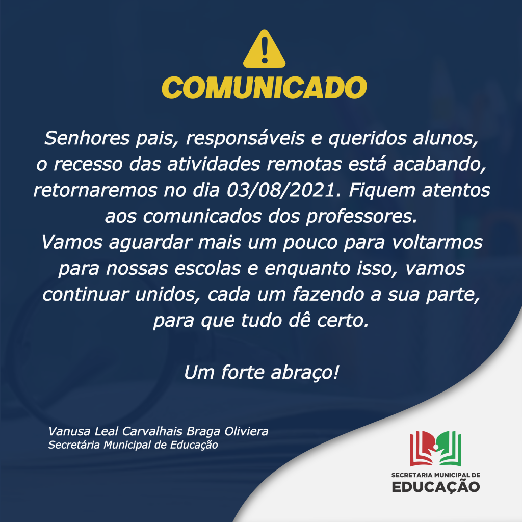 A Secretaria Municipal de Saúde convoca as pessoas com idade acima de 40 anos que ainda não se vacinaram contra a COVID-19, que compareça à sua Unidade de Saúde o mais breve possível, portando o seu RG, CPF, Cartão do Sus e Cartão de Vacinas. Pessoas do grupo de 45 a 49 anos que ainda […]