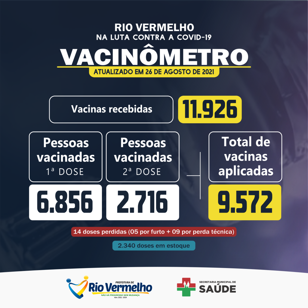 A Prefeitura de Rio Vermelho, através da Secretaria Municipal de Saúde, informa os números atualizados da vacinação contra a COVID-19 no município. Atualizado em: 26/08/2021