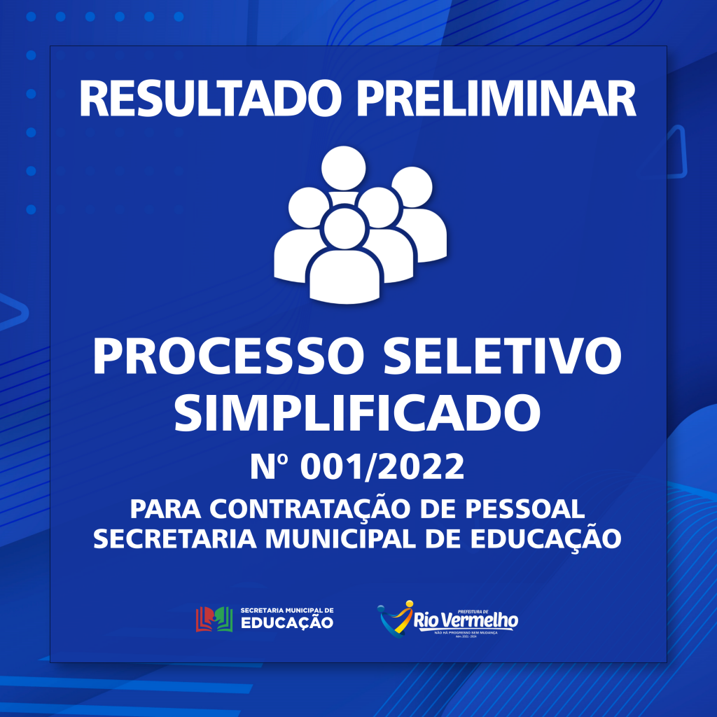 RESULTADO PRELIMINAR DO PROCESSO SELETIVO SIMPLIFICADO Nº 001/2022 – SEC. MUN. DE EDUCAÇÃO