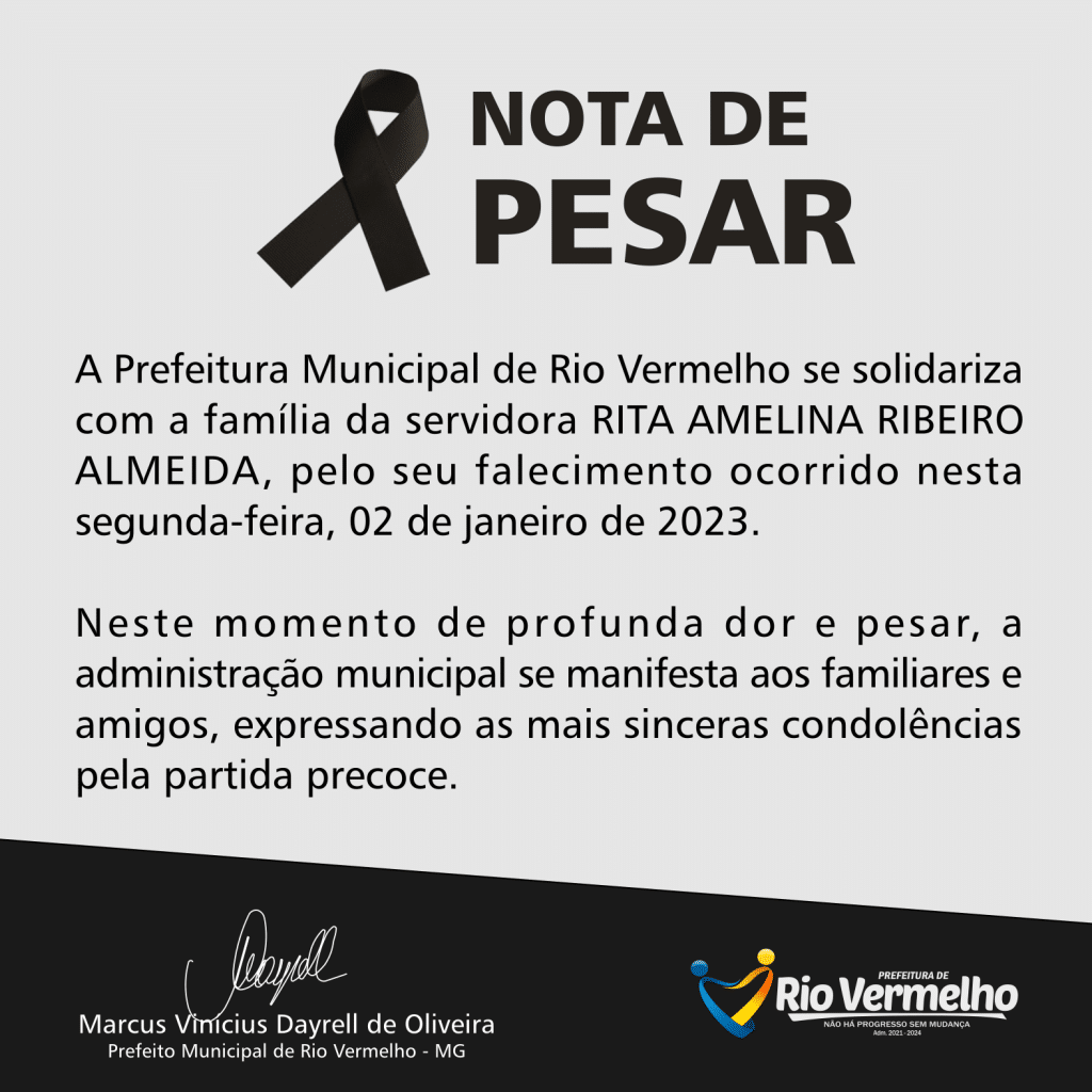 Rita Amelina Ribeiro Almeida era servidora pública municipal desde 1997, a qual desempenhava a função de Auxiliar de Serviços Públicos. Sua partida deixa um legado de luta e amor pela vida. Rita deixará saudades a todos. Descanse em paz!