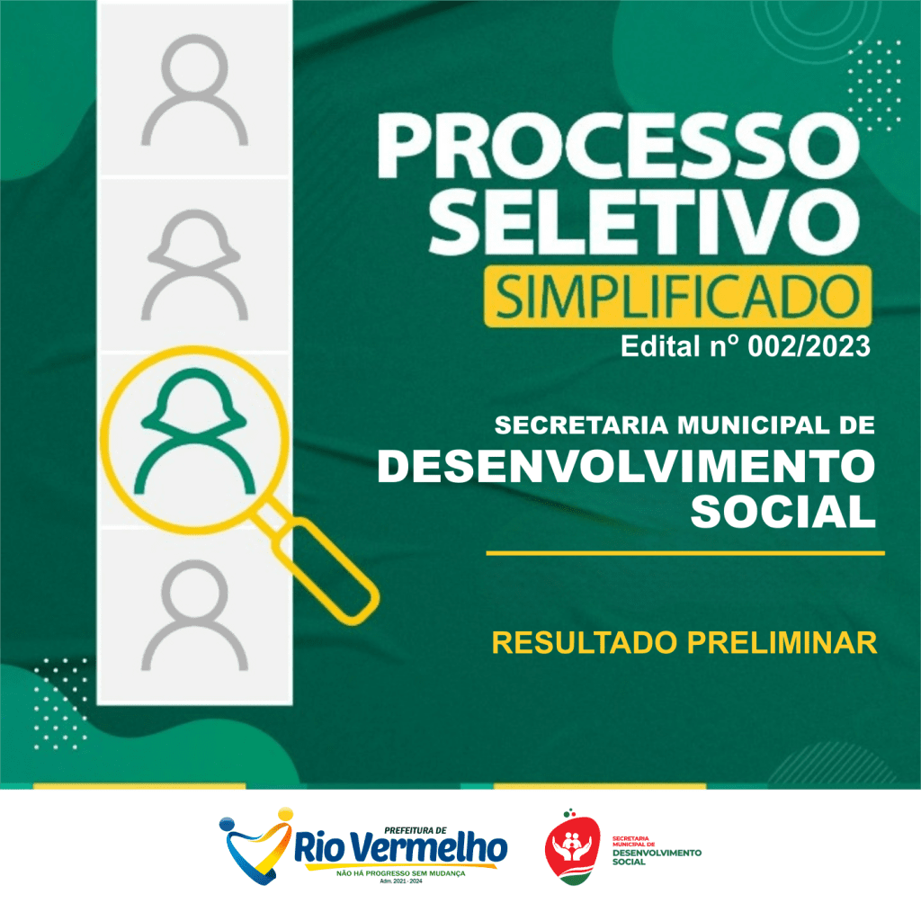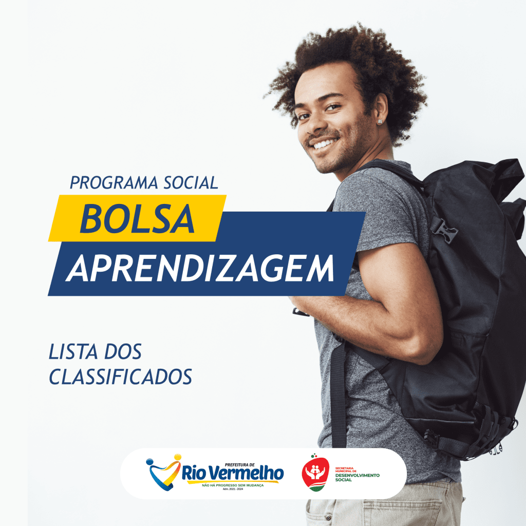 A Prefeitura Municipal de Rio Vermelho através da Secretaria Municipal de Desenvolvimento Social torna pública a relação dos classificados para o Programa Social Bolsa Aprendizagem Profissional, conforme o edital de seleção 001/2023 Lei 1.429/2023.