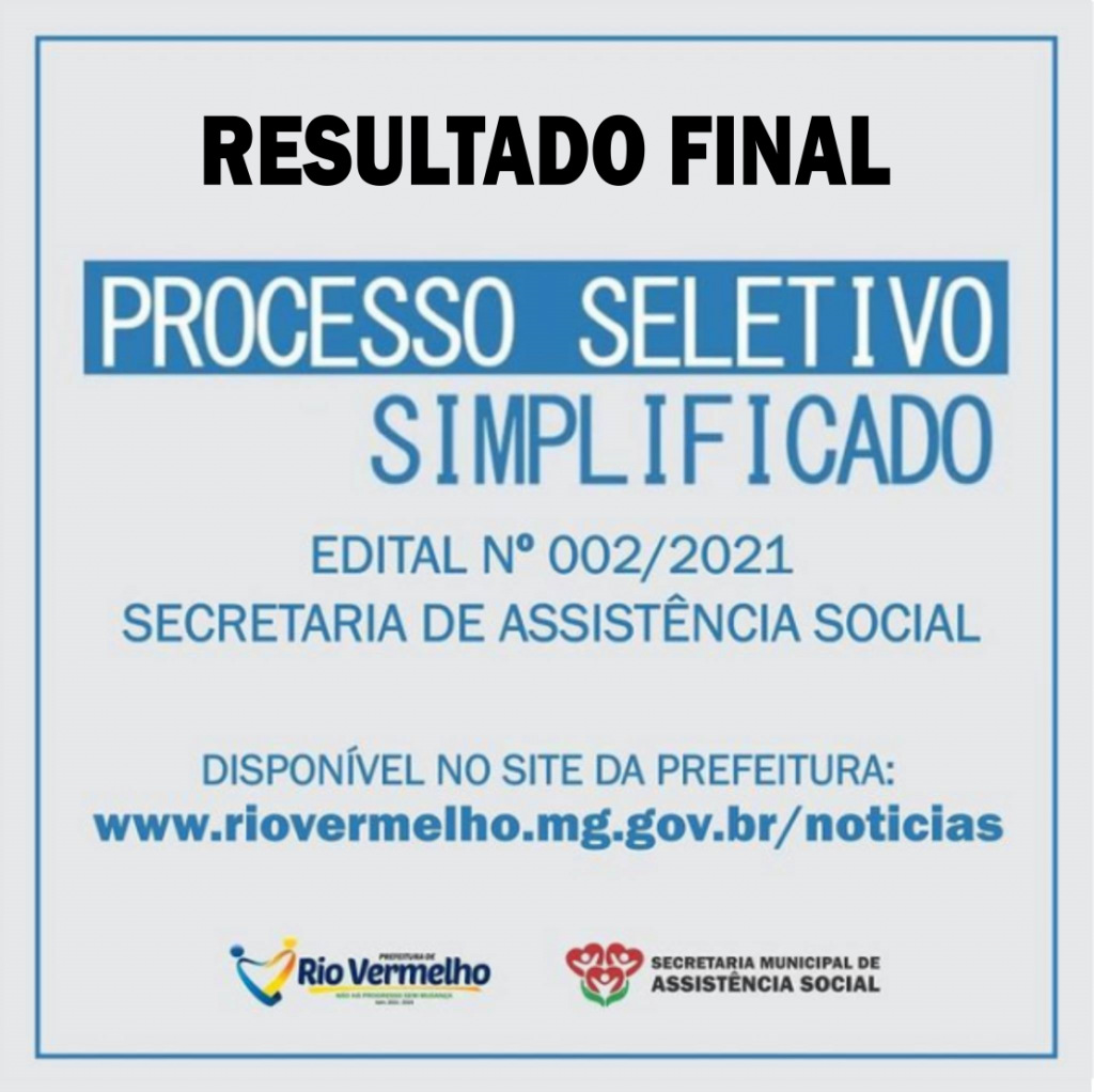 RESULTADO FINAL DO PROCESSO SELETIVO SIMPLIFICADO Nº 002/2021 – SECRETARIA DE ASSISTÊNCIA SOCIAL