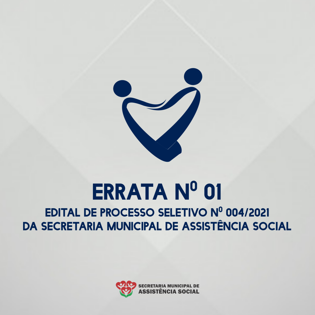 ERRATA Nº 01, DO EDITAL DE PROCESSO SELETIVO SIMPLIFICADO Nº 004/2021 – SECRETARIA MUNICIPAL DE ASSISTÊNCIA SOCIAL