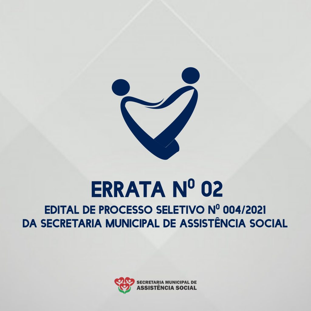 ERRATA Nº 02, DO EDITAL DE PROCESSO SELETIVO SIMPLIFICADO Nº 004/2021 – SECRETARIA MUNICIPAL DE ASSISTÊNCIA SOCIAL