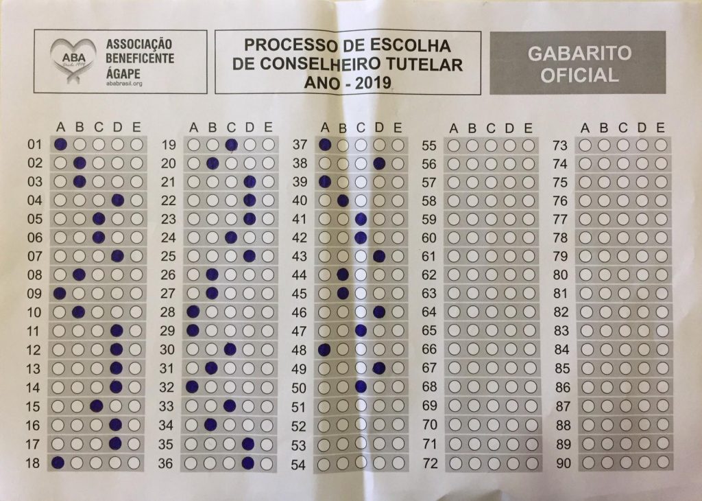 Gabarito oficial da Prova de Conhecimentos Específicos do Processo de Escolha de Conselheiro Tutelar