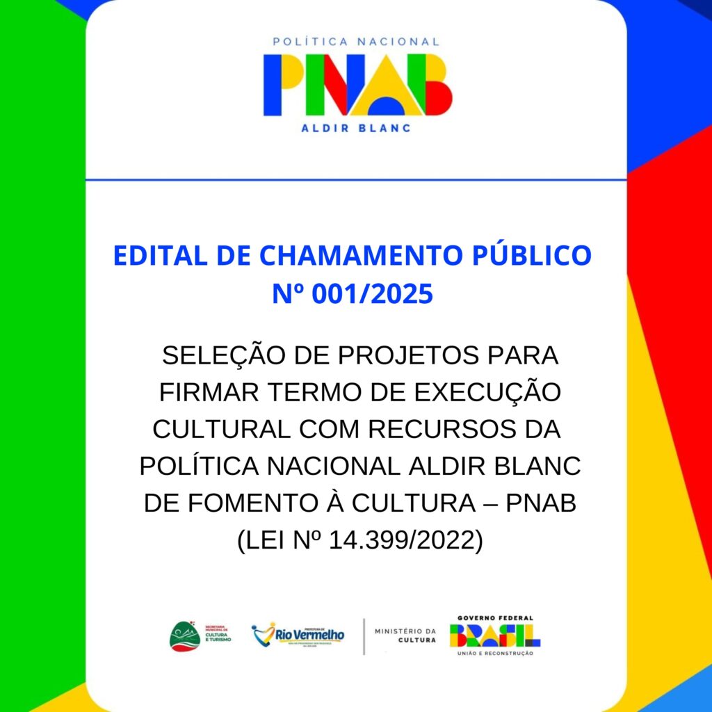 EDITAL DE CHAMAMENTO PÚBLICO Nº 001/2025 SELEÇÃO DE PROJETOS PARA FIRMAR TERMO DE EXECUÇÃO CULTURAL COM RECURSOS DA POLÍTICA NACIONAL ALDIR BLANC DE FOMENTO À CULTURA – PNAB (LEI Nº 14.399/2022)