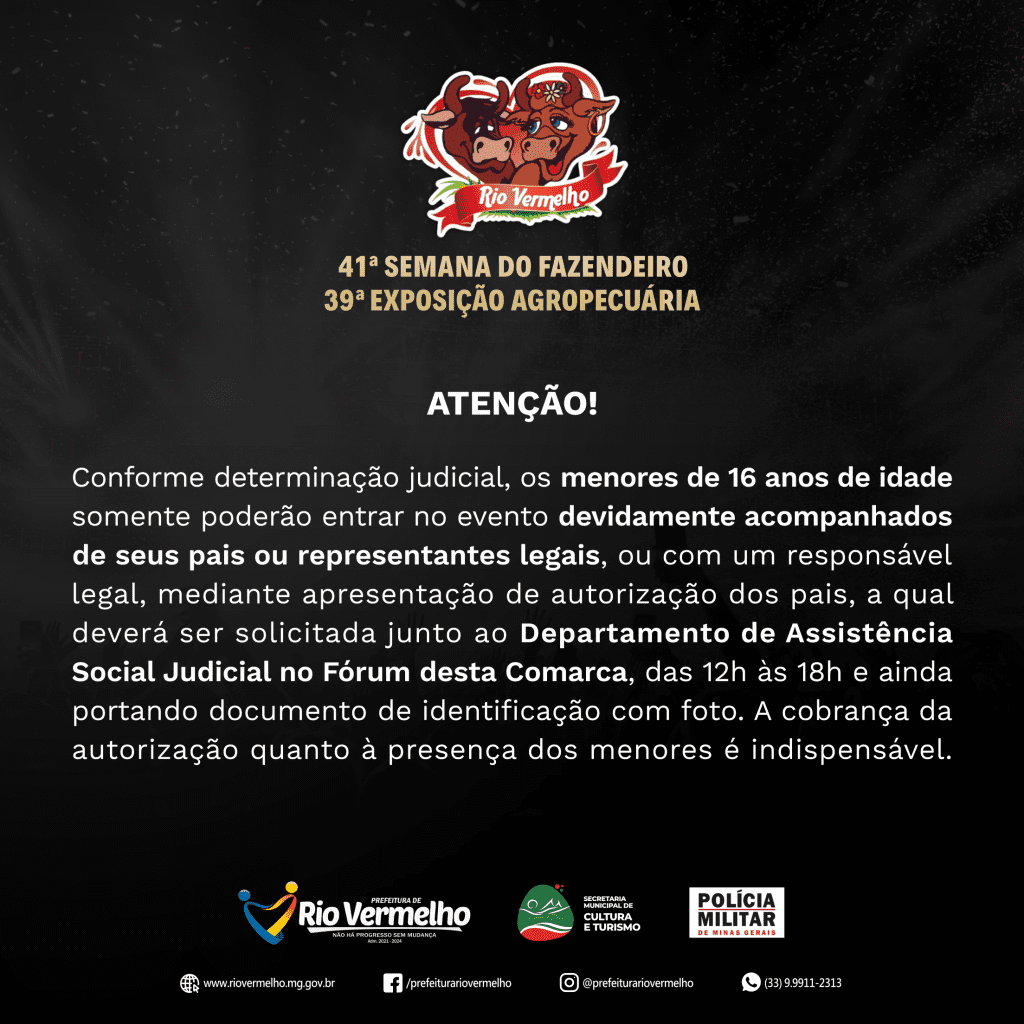 SEMANA DO FAZENDEIRO – Entrada de menores de anos