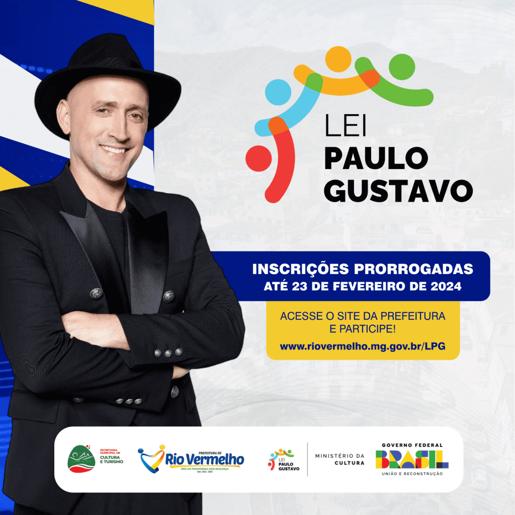 A Prefeitura de Rio Vermelho, através da Secretaria Municipal de Cultura e Turismo, informa que as inscrições para os Editais da Lei Paulo Gustavo foram prorrogadas para 23 de fevereiro de 2024. Acesse o site oficial da Prefeitura Municipal de Rio Vermelho e participe!