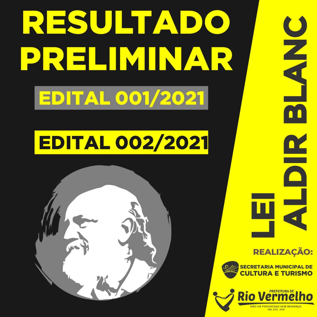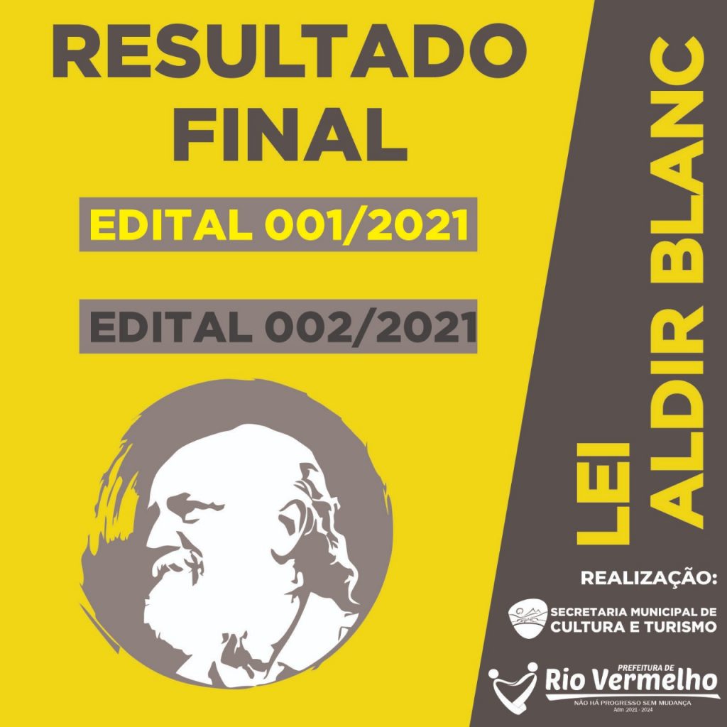 A Secretaria Municipal de Cultura e Turismo divulga o resultado preliminar dos Editais 001/2021 e 002/2021 de Seleção de Projetos para Aplicação da Lei Aldir Blanc no município de Rio Vermelho.