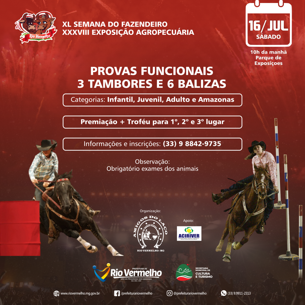 A Prefeitura Municipal de Rio Vermelho, por meio da Secretaria de Cultura e Turismo, divulga as primeiras atrações da Semana do Fazendeiro de 2022, que será realizada do dia 11/07/2022 ao dia 17/07/2022, no Parque de Exposições. Confira: