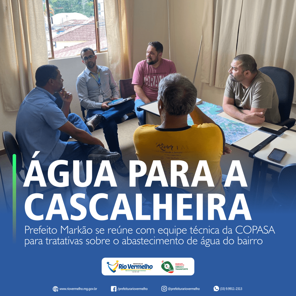 Após implantação da caixa d’água de 100 mil litros no bairro Cascalheira, a prefeitura municipal de Rio Vermelho realizou na data de hoje (05/04), reunião com a equipe técnica da COPASA para definir os próximos passos para o abastecimento de água do bairro. Participaram da reunião o prefeito Markão, o vice-prefeito Djalma, o engenheiro Kássio […]