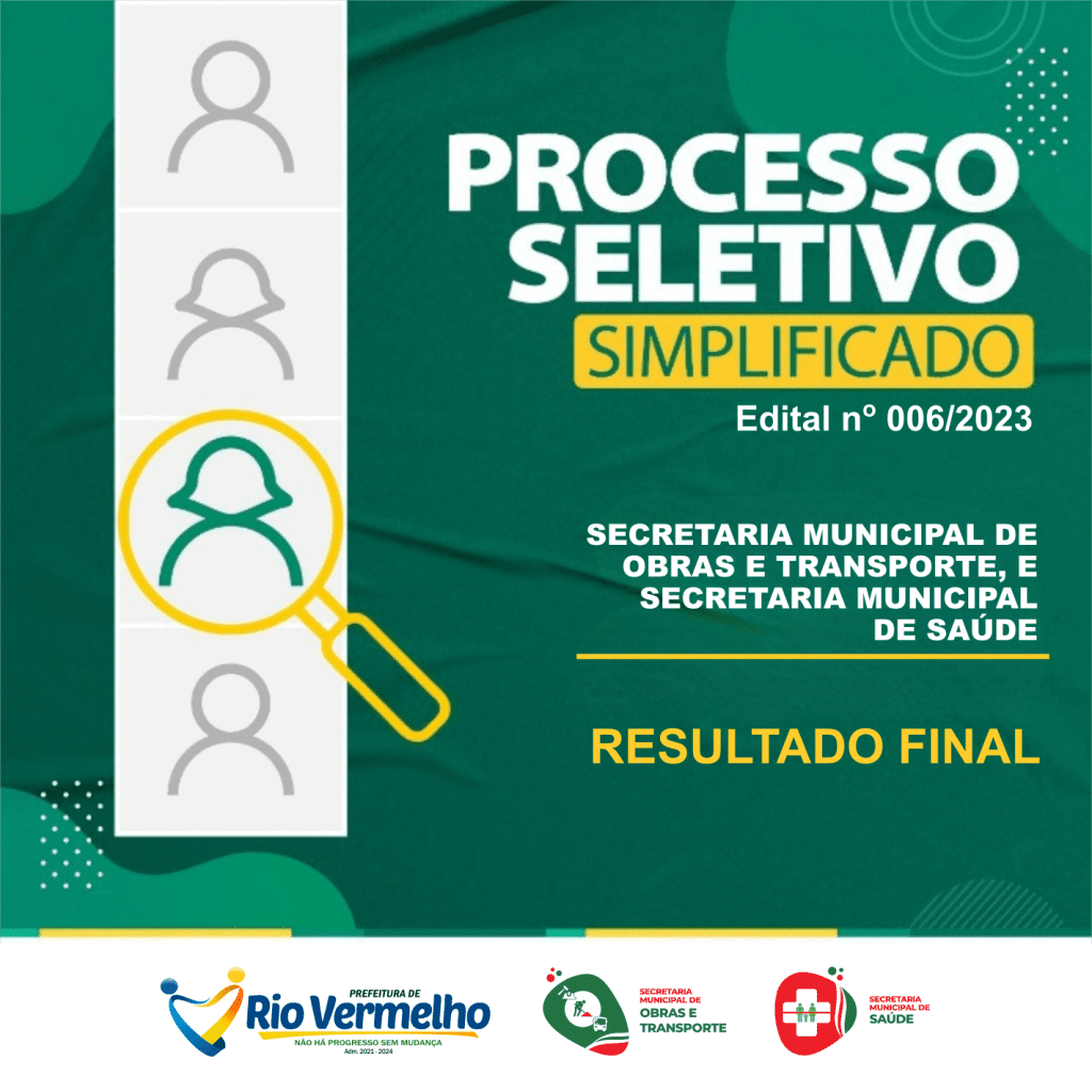 RESULTADO FINAL – PROCESSO SELETIVO SIMPLIFICADO – EDITAL Nº 006/2023 – SECRETARIA DE SAÚDE E SECRETARIA DE OBRAS E TRANSPORTES