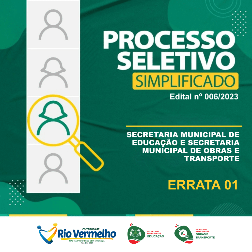 ERRATA 01 – PROCESSO SELETIVO SIMPLIFICADO – EDITAL Nº 006/2023 – SECRETARIA DE SAÚDE E SECRETARIA DE OBRAS E TRANSPORTES