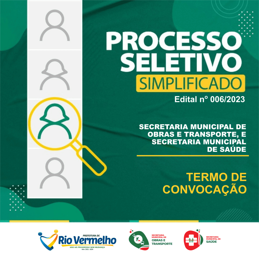 TERMO DE CONVOCAÇÃO – PROCESSO SELETIVO SIMPLIFICADO – EDITAL Nº 006/2023 – SECRETARIA DE SAÚDE E SECRETARIA DE OBRAS E TRANSPORTES