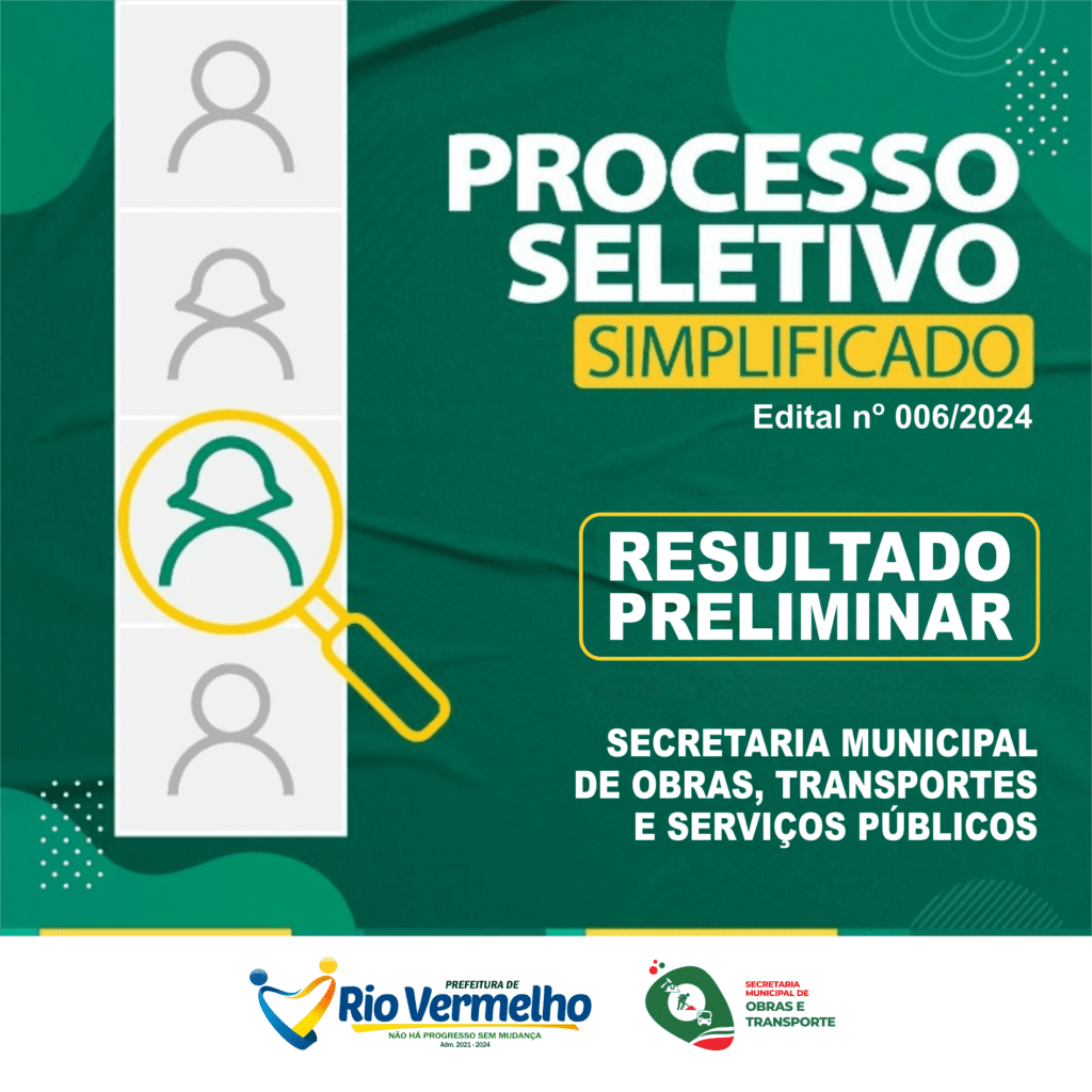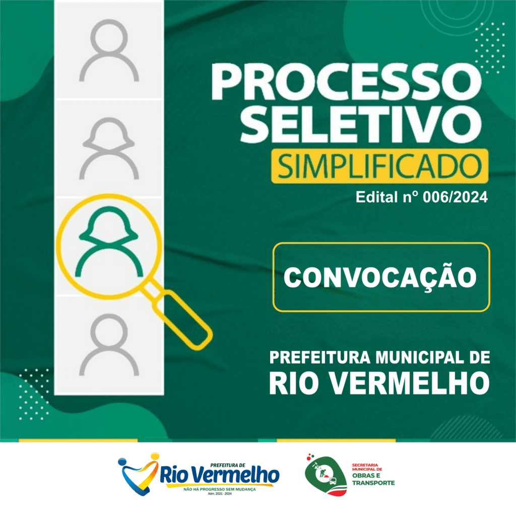 PROCESSO SELETIVO SIMPLIFICADO – EDITAL Nº 006/2024 – PREFEITURA MUNICIPAL DE RIO VERMELHO