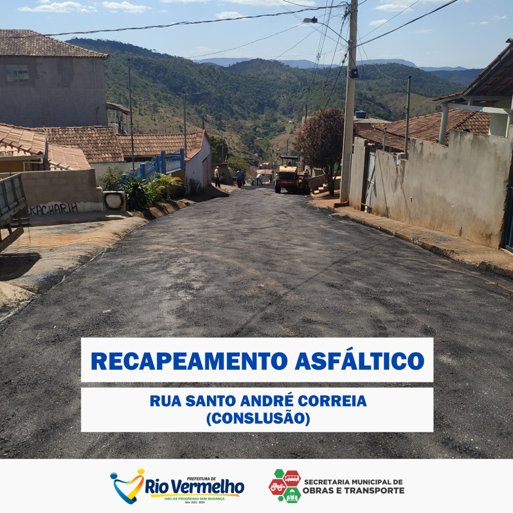 Mais uma rua que se encontrava em estado muito crítico foi recapeada pela Prefeitura de Rio Vermelho. A Rua Santo André Correia, popularmente conhecida por Rua Santo Quebrou, que liga os bairros Chapadinha e Alto do Rosário. A atual gestão não tem medido esforços para recuperar os calçamentos da cidade.