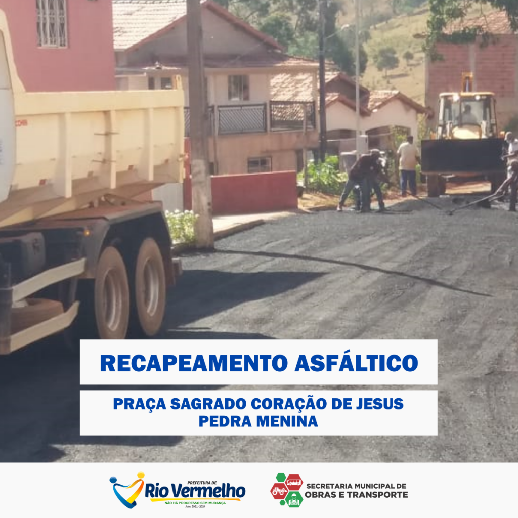 A Prefeitura de Rio Vermelho, por meio da Secretaria Municipal de Obras e Transportes, está realizando recapeamento asfáltico na Praça Sagrado Coração de Jesus, no Distrito de Pedra Menina. As obras não param no município!