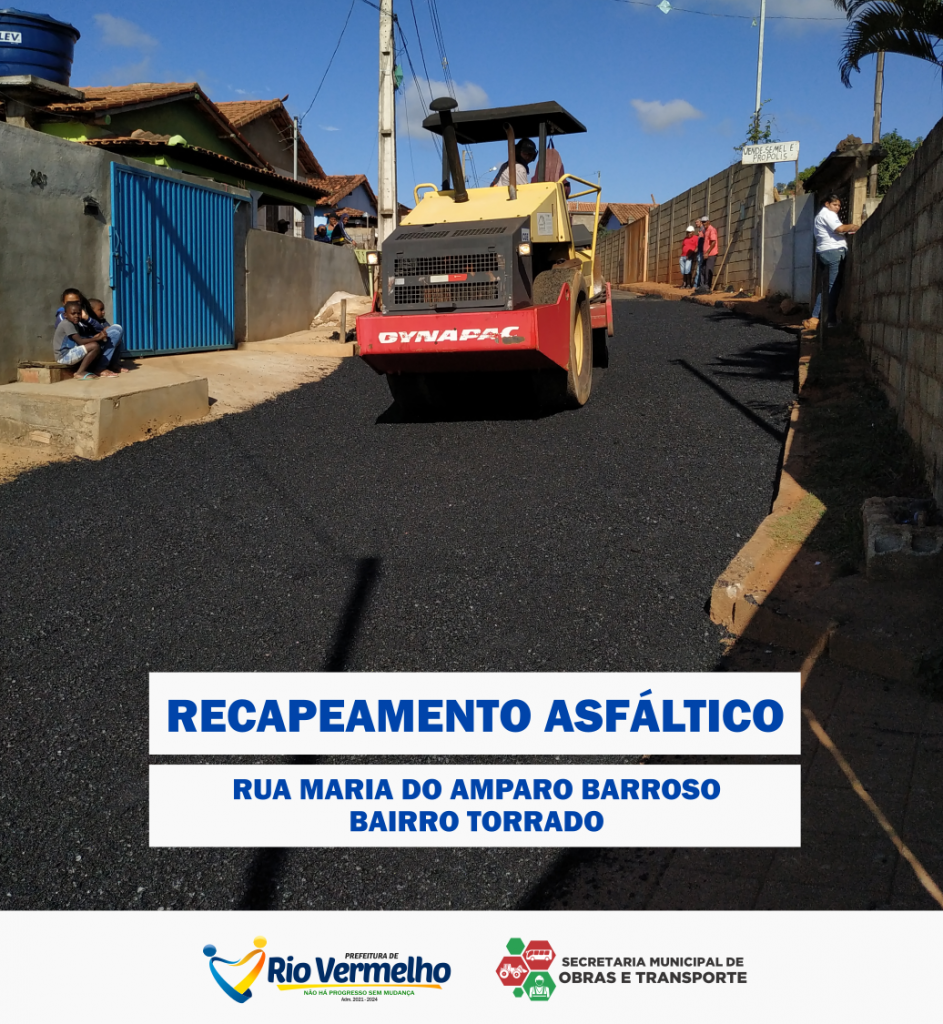 A Prefeitura de Rio Vermelho, através da Secretaria de Obras, segue com os serviços de recapeamento da Rua Maria do Amparo Barroso, no Bairro Torrado. A obra, iniciada em 14 de junho de 2021, está na sua reta final com cerca de 70% do trecho concluído.