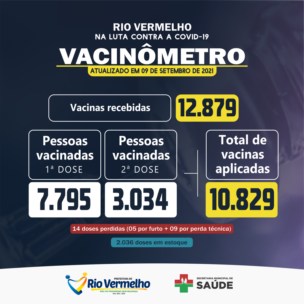 A Prefeitura de Rio Vermelho, através da Secretaria Municipal de Saúde, informa os números atualizados da vacinação contra a COVID-19 no município. Atualizado em: 09/09/2021