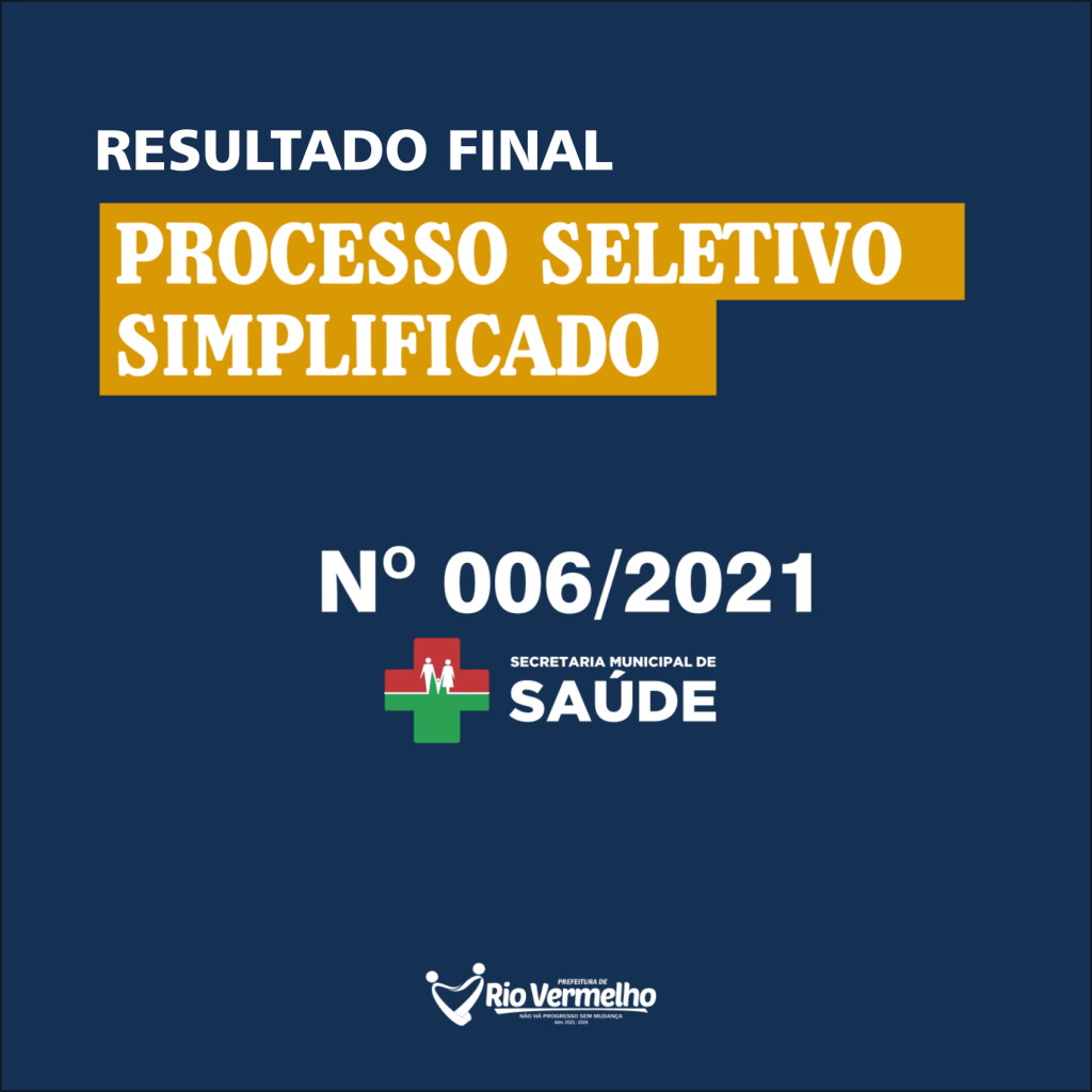 RESULTADO FINAL DO PROCESSO SELETIVO SIMPLIFICADO EDITAL Nº 006/2021 – SEC. MUN. DE SAÚDE