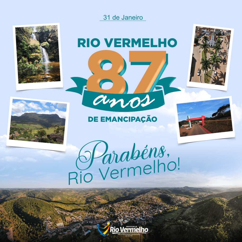 O município de Rio Vermelho foi emancipado politicamente no dia 31 de janeiro de 1938. Hoje é dia de parabenizar cada riovermelhense pelos 87 anos de história! Viva, Rio Vermelho! Viva, nossa terra querida!