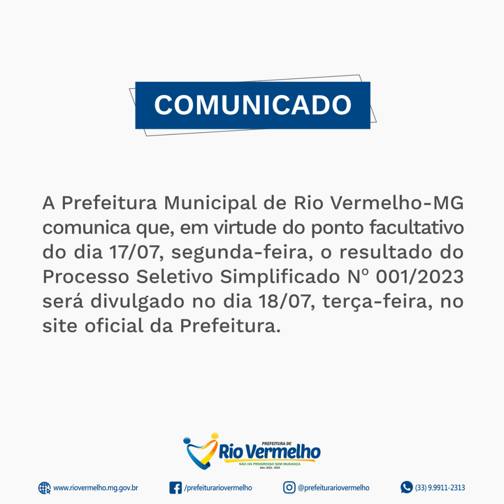 PREFEITURA DE RIO VERMELHO COMUNICA: