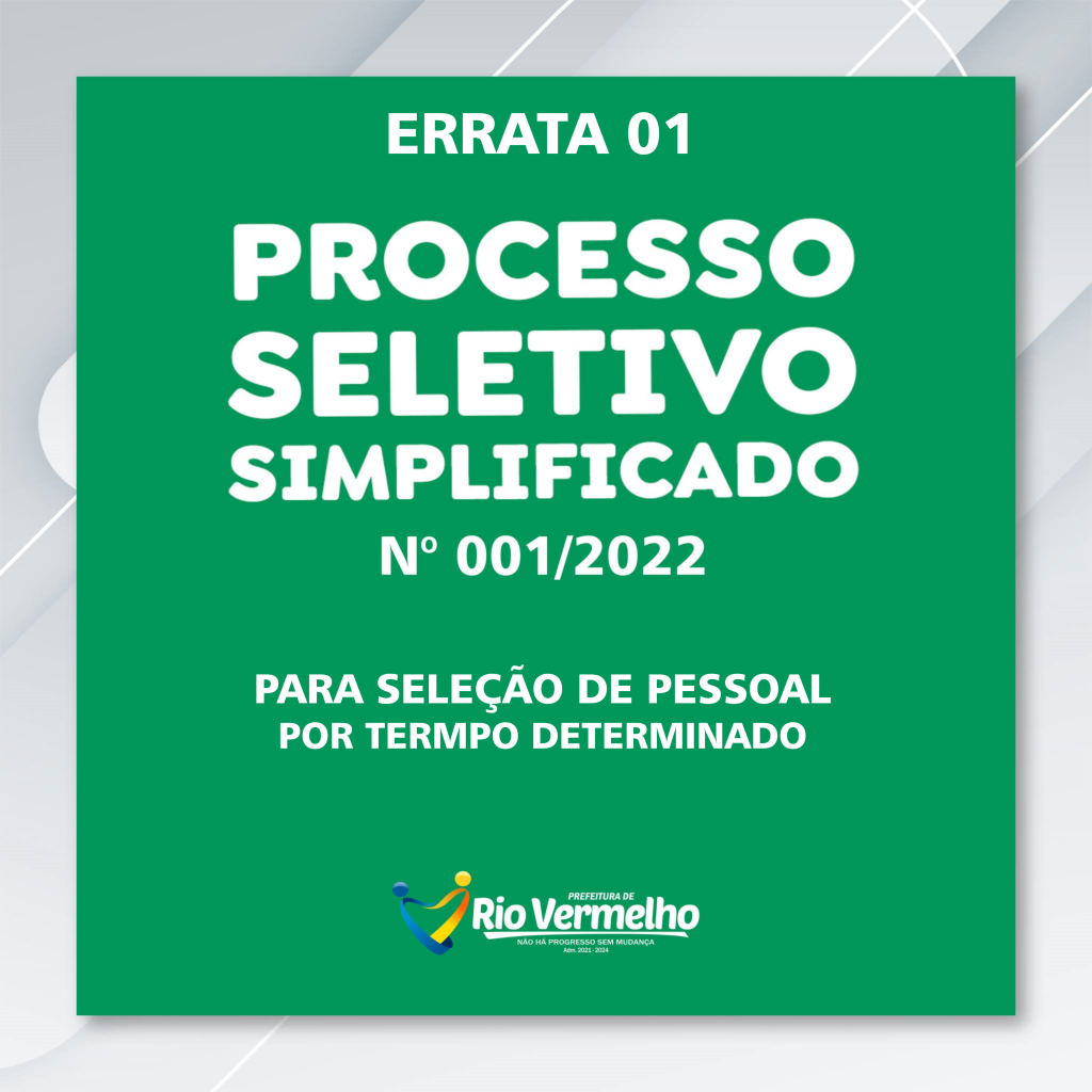 ERRATA 01 DO PROCESSO SELETIVO SIMPLIFICADO EDITAL Nº 001/2022 – PREFEITURA MUNICIPAL DE RIO VERMELHO