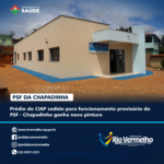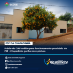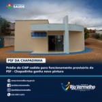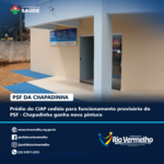 A Prefeitura de Rio Vermelho, através da Secretaria Municipal de Saúde, em parceria com a Secretaria Municipal de Obras, realizou uma nova pintura no prédio do Centro Intersetorial de Atenção à Pessoa Idosa – CIAP, que foi cedido para o funcionamento provisório do PSF – Chapadinha, no qual sua sede passa por obras de melhorias.
